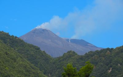 Mt Etna was gently puffing white smoke into the air. Occasionally a more belligerent puff of dark grey smoke would appear, just to remind us that it was in control.